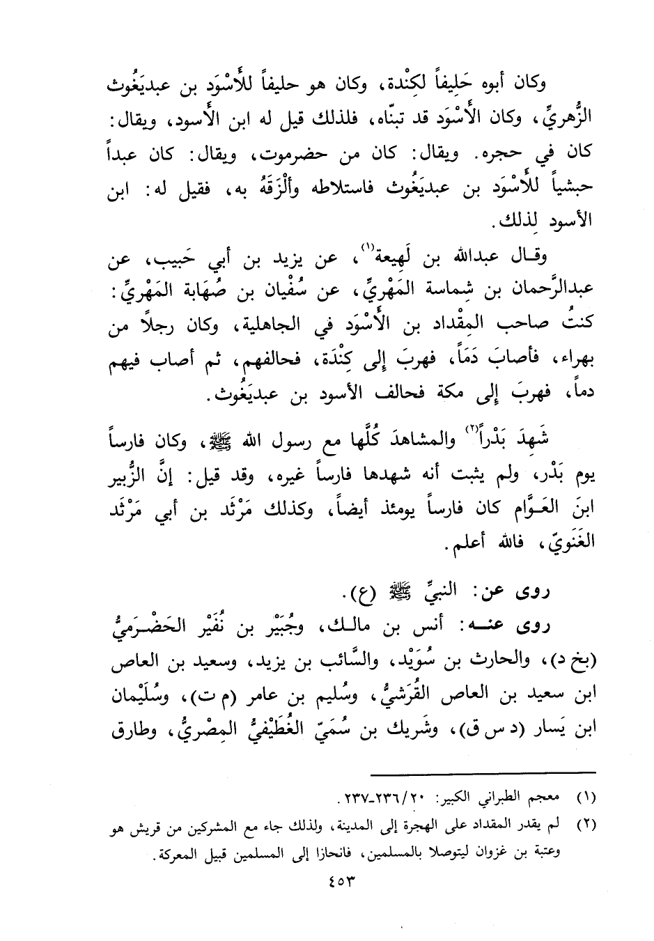 (2) لم يقدر المقداد على الهجرة إلى المدينة، ولذلك جاء مع المشركين من قريش هو وعتبة بن غزوان ليتوصلا بالمسلمين، فانحازا إلى المسلمين قبيل المعركة.