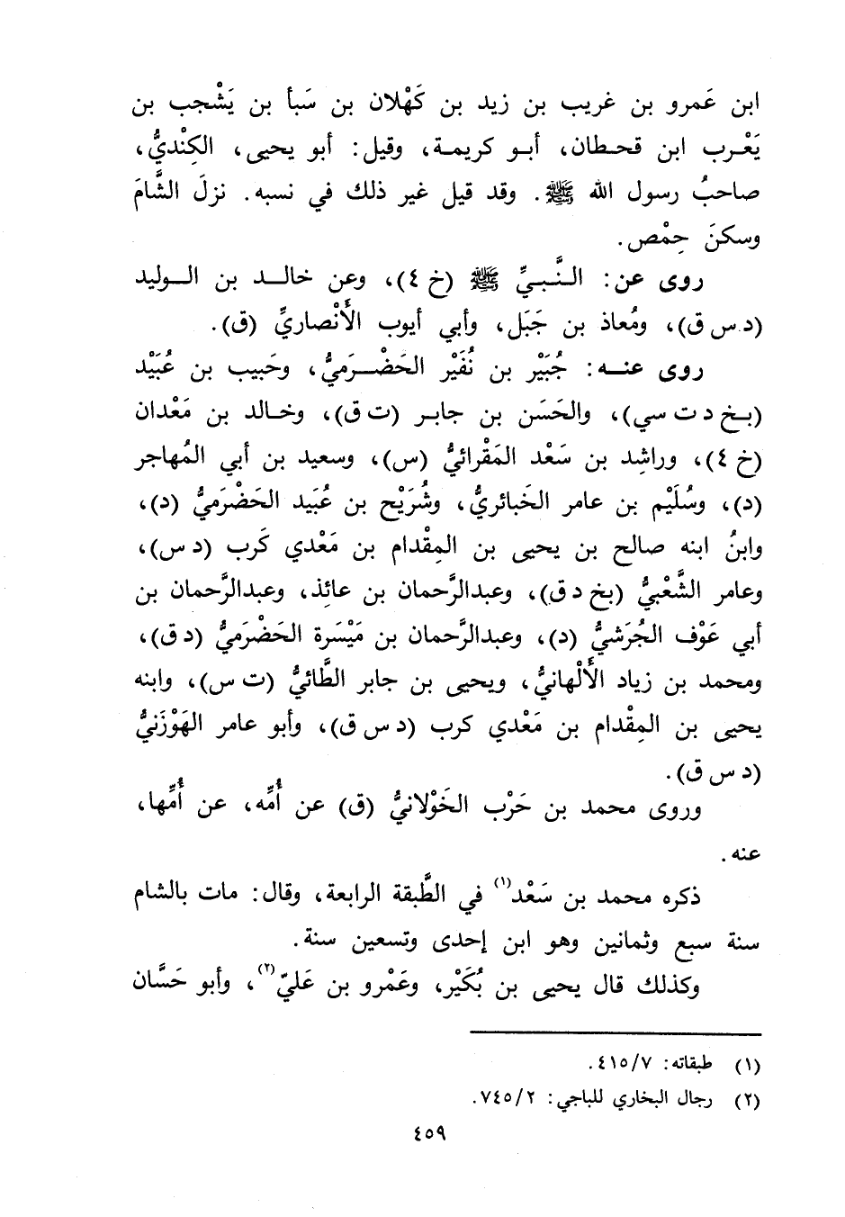 ابن عَمْرو بْن غريب بْن زيد بْن كهلان بْن سبأ بْن يشجب بن يعرب ابن قحطان، أبو كريمة، وقيل: أبويحيى، الكندي، صاحب رَسُول اللَّهِ صَلَّى الله عليه وسلم، وقد قيل غير ذلك فِي نسبه. نزل الشام وسكن حمص.