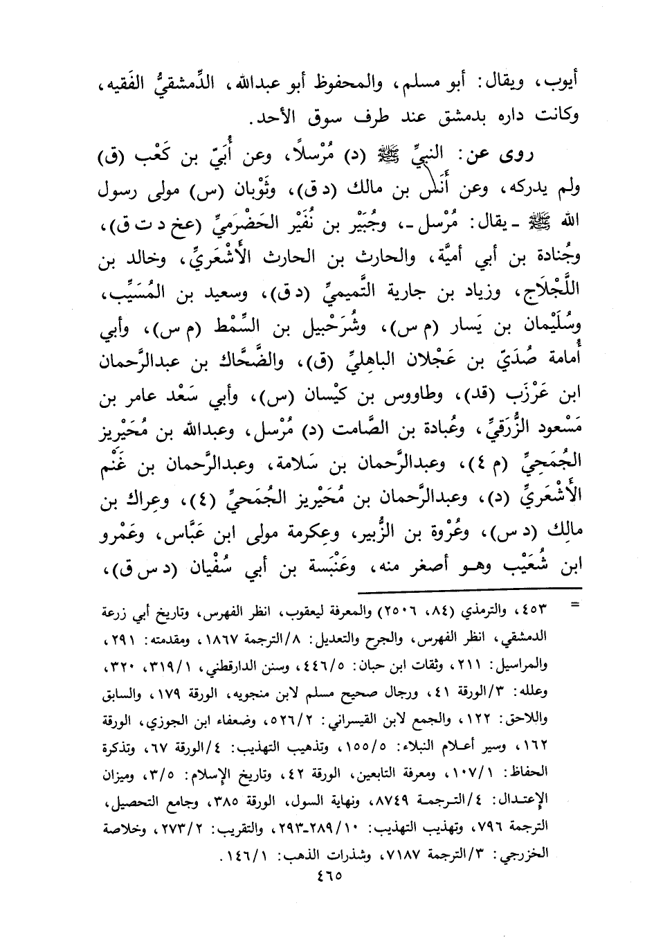 أيوب، ويُقال: أَبُو مسلم. والمحفوظ أَبُو عَبْد اللَّهِ، الدمشقي الفقيه، وكانت داره بدمشق عند طرف سوق الأحد.
