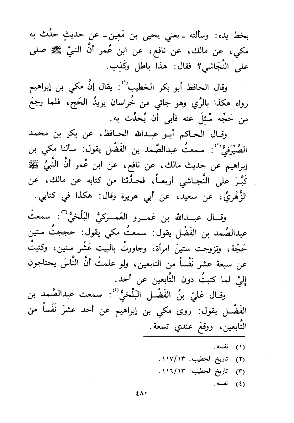 وَقَال الحاكم أَبُو عَبْدِ اللَّهِ الْحَافِظُ، عَنْ بَكْرِ بْنِ مُحَمَّدٍ الصَّيْرَفِيِّ (2) : سَمِعْتُ عَبْدَ الصَّمَدِ بْنَ الْفَضْلِ يَقُولُ: سَأَلْنَا مَكِّيَّ بْنَ إِبْرَاهِيمَ عَنْ حَدِيثِ مَالِكٍ , عَنْ نَافِع، عَنِ ابْن عُمَر أَنَّ النَّبِيَّ صلى الله عليه وسَلَّمَ كَبَّرَ عَلَى النَّجَاشِيِّ أَرْبَعًا، فحَدَّثَنَا مِنْ كِتَابِهِ عَنْ مَالِكٍ، عَنِ الزُّهْرِيّ، عَنْ سَعِيد، عَن أَبِي هُرَيْرة وَقَال: هَكَذَا فِي كِتَابِي.