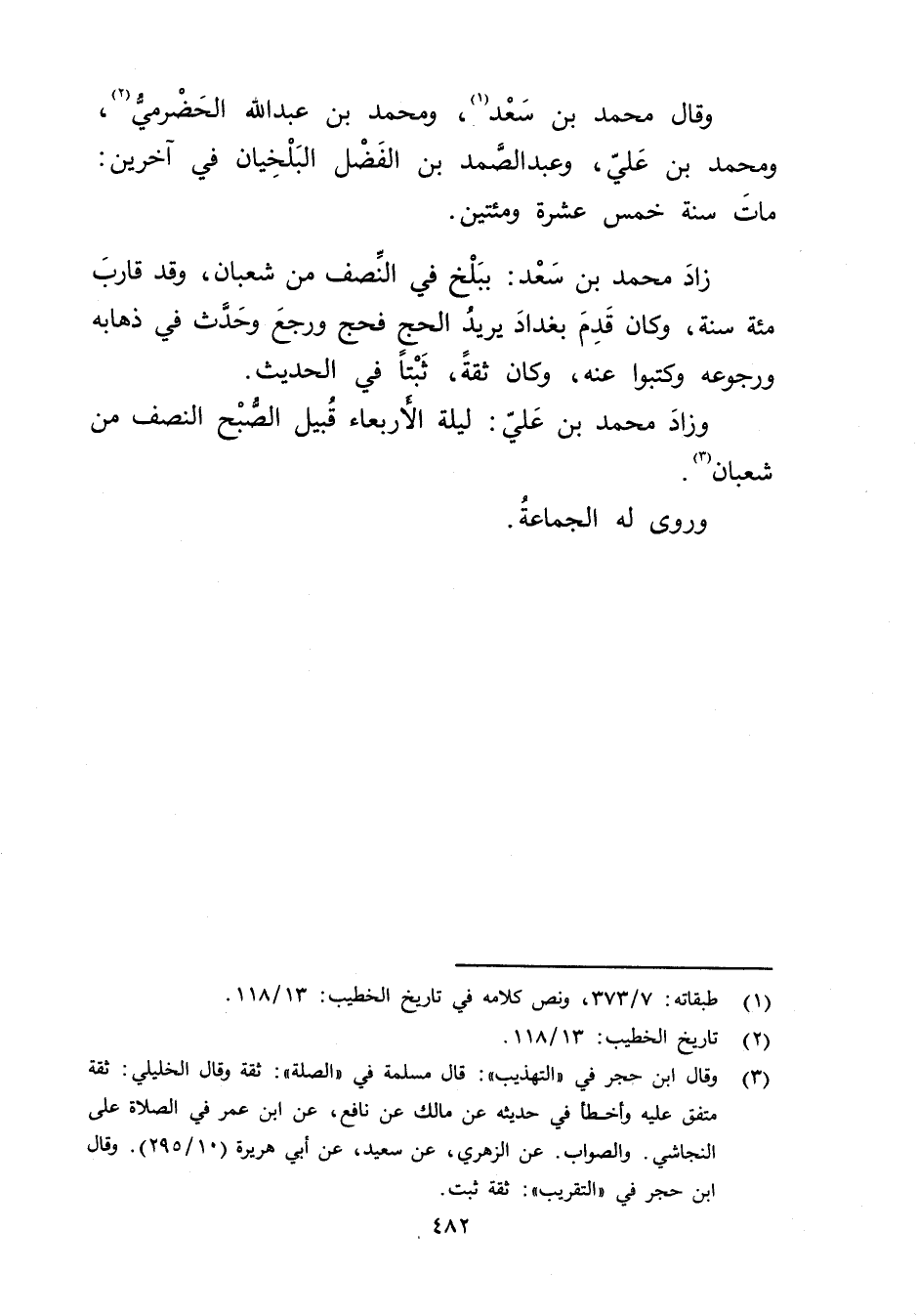 (1) طبقاته: 7 / 373، ونص كلامه في تاريخ الخطيب: 13 / 118.
