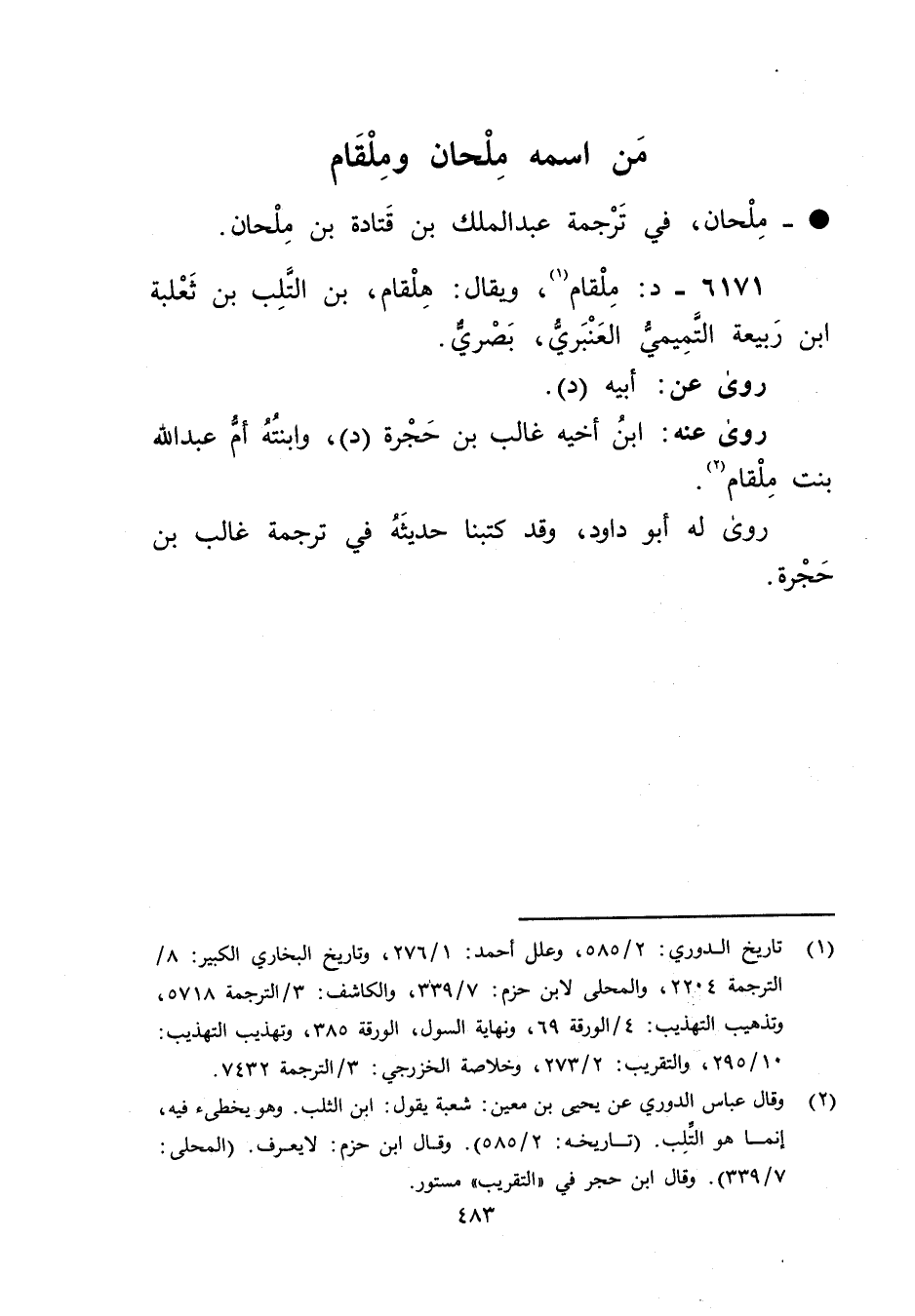 6171 - د: ملقام (1) ، ويُقال: هلقام، بْن التلب بْن ثعلبة ابن ربيعة التميمي العنبري، بصري.