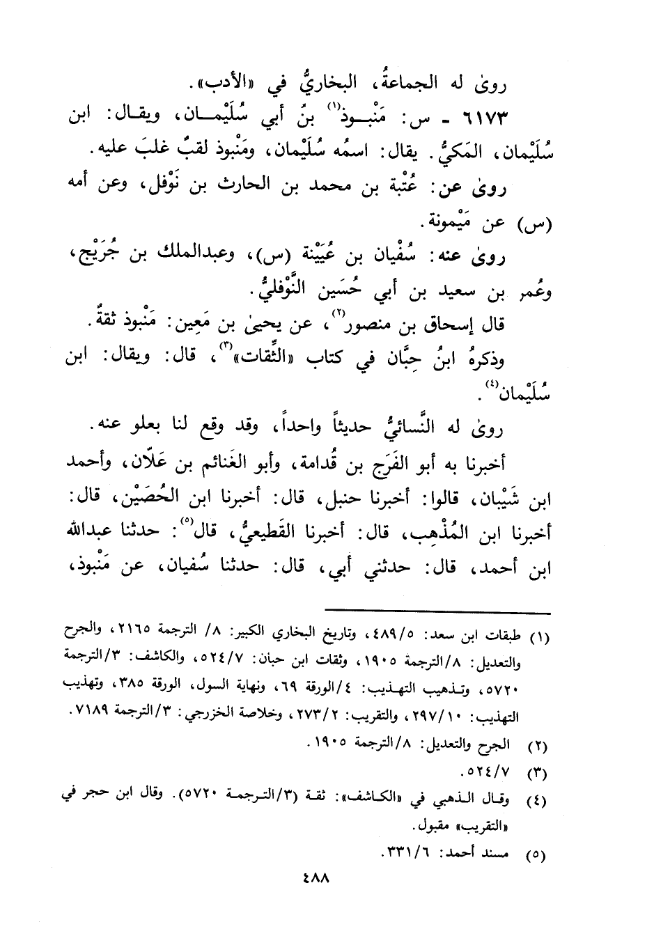 6173 - س: منبوذ بن أَبي سُلَيْمان (1) ، ويُقال: ابْن سُلَيْمان، المكي، يُقَال: اسمه سُلَيْمان، ومنبوذ لقب غلب عليه.