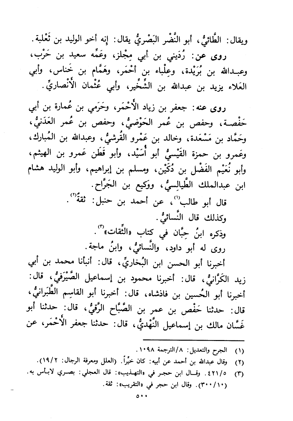 (3) 5 / 421، وَقَال ابن حجر في " التهذيب": قال العجلي: بصري لا بأس بِهِ. (10 / 300) وَقَال ابن حجر في "التقريب": ثقة.