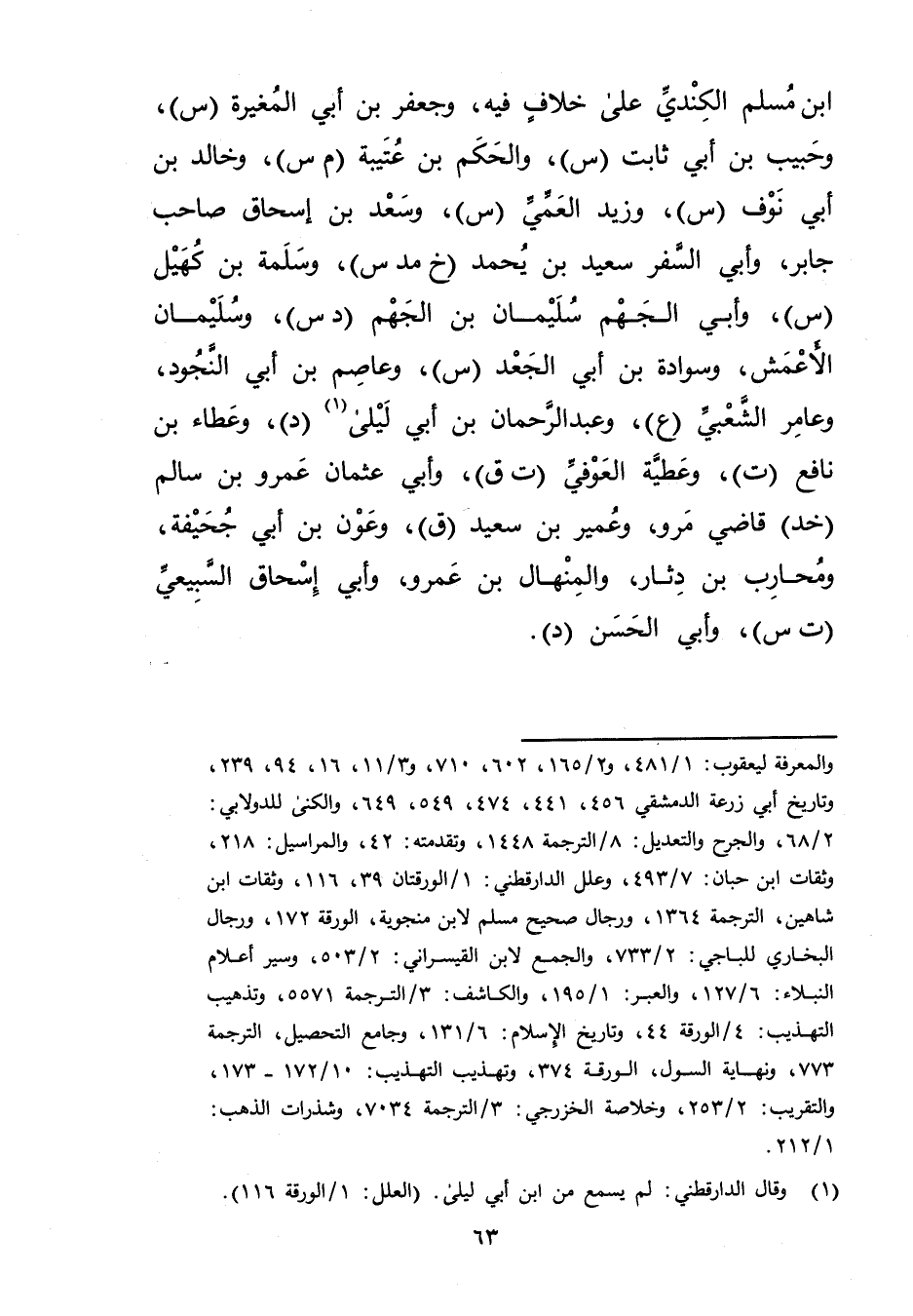 والمعرفة ليعقوب: 1 / 381، و2 / 165، 602، 710، و3 / 11، 16، 94، 239 وتاريخ أبي زرعة الدمشقي 456، 441، 474، 549، 649، والكنى للدولابي: 2 / 68، والجرح والتعديل: 8 / الترجمة 1448، وتقدمته: 42، والمراسيل: 218 وثقات ابن حبان: 7 / 493، وعلل الدارقطني: 1 / الورقتان 39، 116، وثقات ابن شاهين الترجمة 1364، ورجال صحيح مسلم لابن منجوية، الورقة 172، ورجال البخاري للباجي: 2 / 733، والجمع لابن القيسراني: 2 / 503، وسير أعلام النبلاء: 6 / 127، والعبر: 1 / 195، والكاشف: 3 / الترجمة 5571، وتذهيب التهذيب: 4 / الورقة 44، وتاريخ الاسلام: 6 / 131، وجامع التحصيل، الترجمة 773، ونهاية السول، الورقة 374، وتهذيب التهذيب: 10 / 172 - 173، والتقريب: 2 / 253، وخلاصة الخزرجي: 3 / الترجمة 7034، وشذرات الذهب: 1 / 212