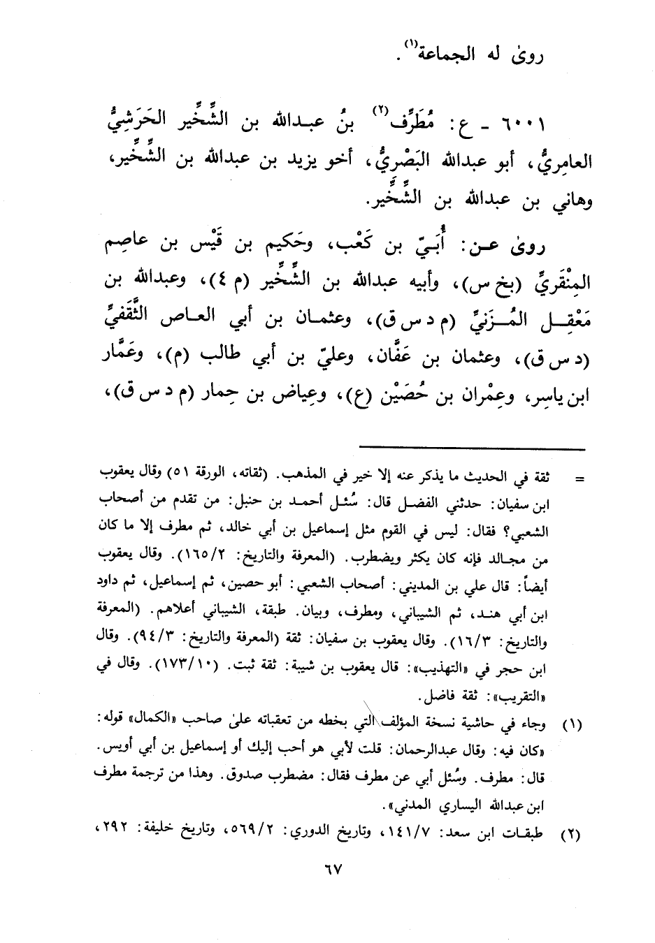 6001 - ع: مطرف بْن عَبد الله بْن الشخير الحرشي العامري (2) ، أَبُو عَبد اللَّهِ البَصْرِيّ، أخو يزيد بْن عَبد اللَّهِ بْن الشخير وهاني بْن عَبْدِ اللَّهِ بْن الشخير