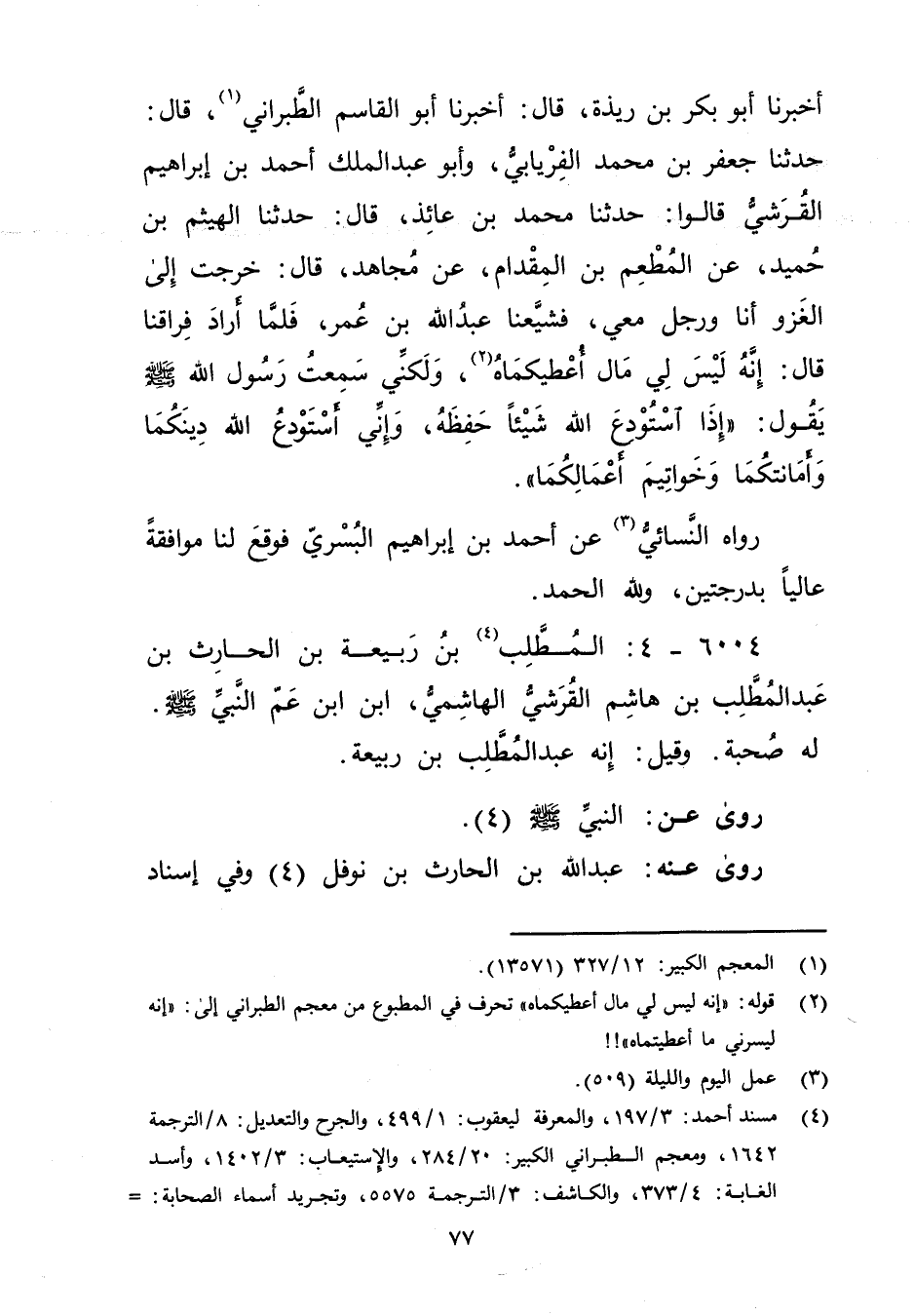 (2) قوله: "إِنَّهُ لَيْسَ لِي مَالٌ أُعْطِيكُمَاهُ "تحرف في المطبوع من معجم الطبراني إلى: "إنه ليسرني ما أعطيتماه "! !
