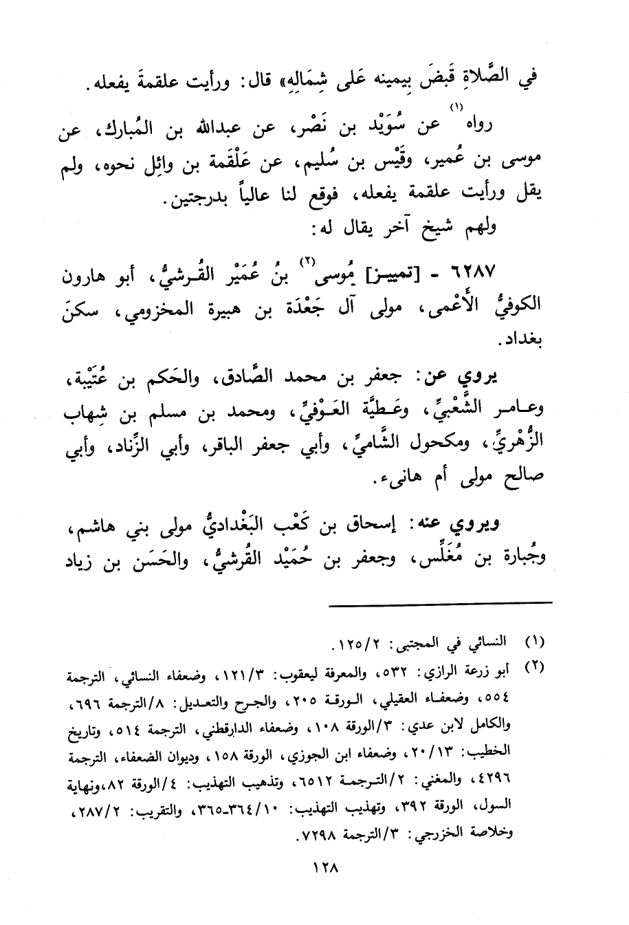 6287 - (تمييز) مُوسَى بن عُمَير القرشي (2) ، أَبُو هارون الكوفي الأعمى، مولى آل جعدة بْن هبيرة المخزومي، سكن بغداد.
