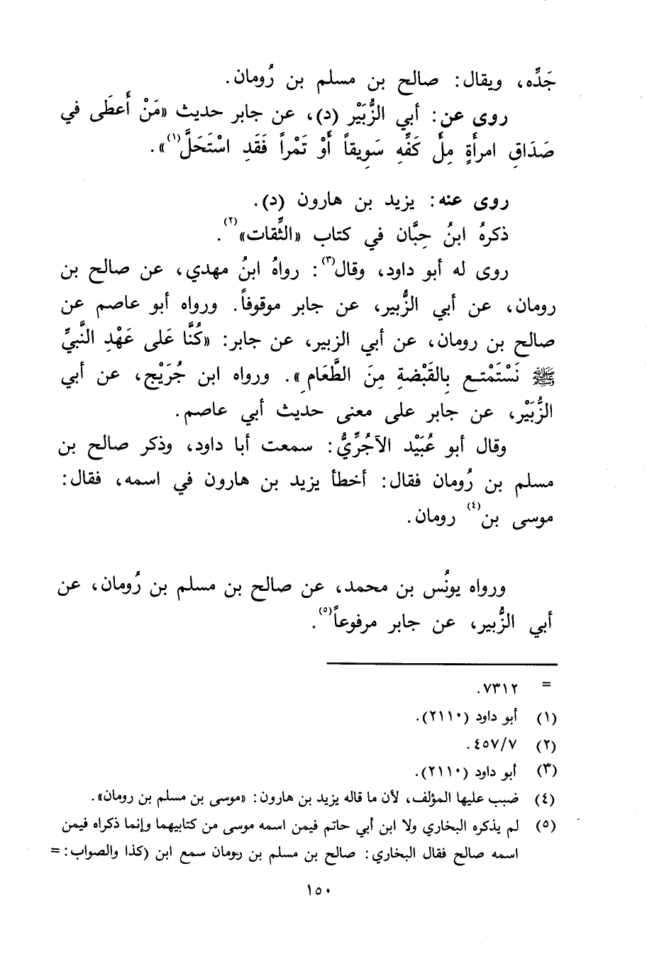 روى له أَبُو دَاوُدَ، وَقَال (3) : رَوَاهُ ابْنُ مهدي، عن صالح بن رومان، عَن أَبِي الزبير، عن جابر موقوفا. ورَوَاهُ أَبُو عاصم عن صالح بن رومان، عَن أَبِي الزبير، عن جابر: كنا على عهد النَّبِيّ صَلَّى اللَّهُ عليه وسلم نستمتع بالقبضة من الطعام". ورَوَاهُ ابْنُ جُرَيْج، عَن أَبِي الزبير، عن جابر عَلَى معنى حديث أبي عاصم.