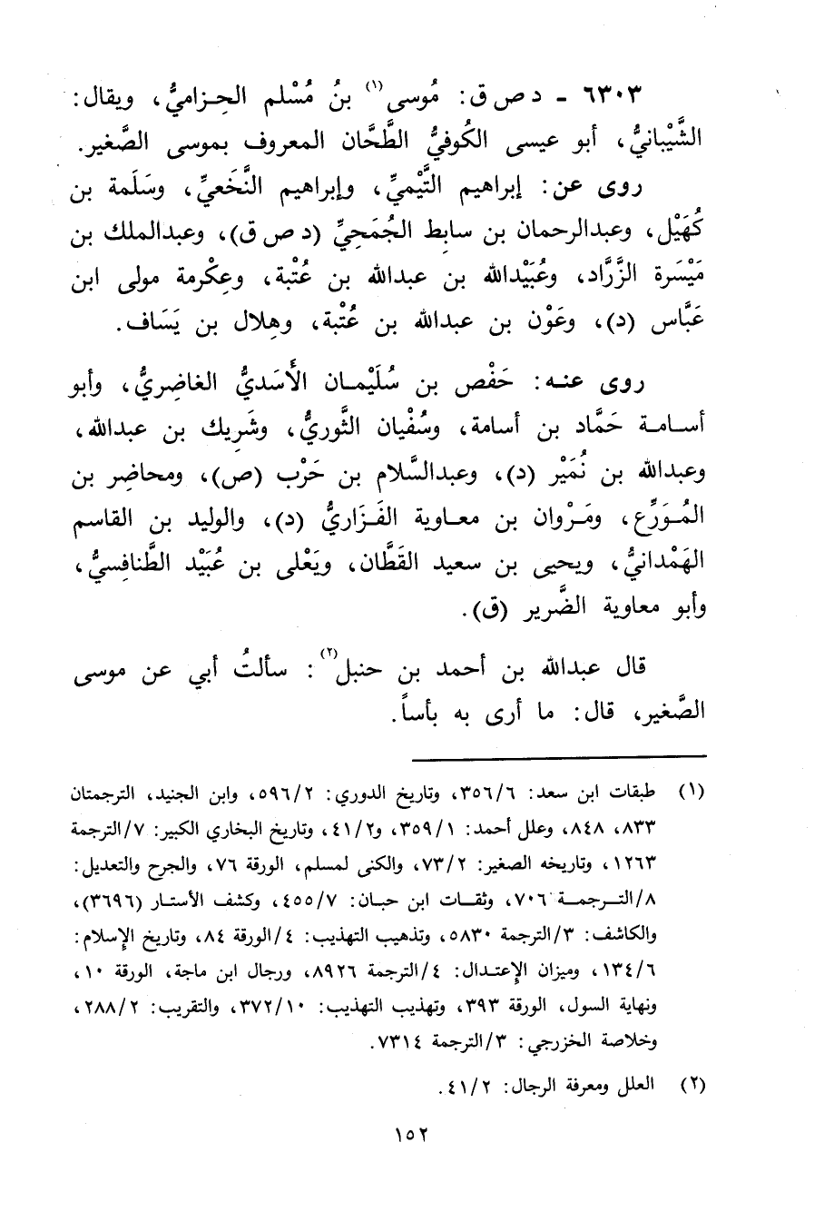 6303 - د ص ق: مُوسَى بن مسلم الحزامي (1) ، ويُقال: الشيباني، أَبُو عِيسَى الكوفي الطحان المعروف بموسى الصغير.