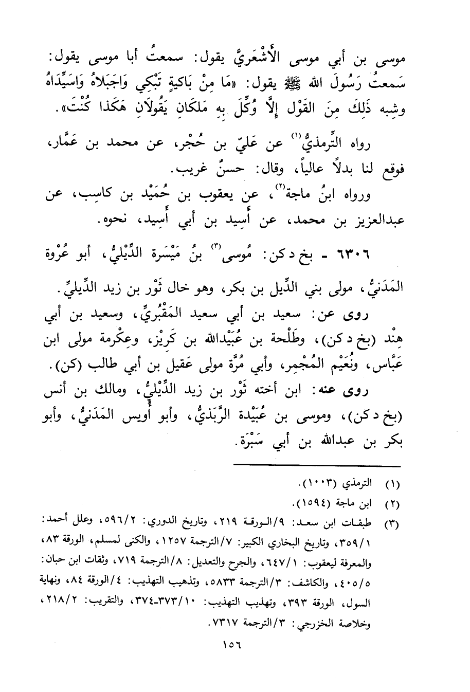 6306 - بخ د كن: مُوسَى بن مَيْسَرَةَ الديلي (3) ، أَبُو عروة المدني، مولى بني الديل بن بكر، وهُوَ خال ثور بن زيد الديلي.