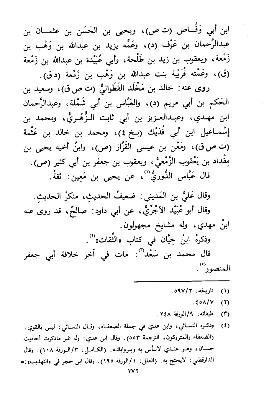 (4) وذكره النَّسَائي، وابن عدي في جملة الضعفاء، وَقَال النَّسَائي: ليس بالقوي. (الضعفاء والمتروكون، الترجمة 553) . وَقَال ابن عدي: وله غير ما ذكرت أحاديث حسان، وهُوَ عندي لا بأس به وبرواياته. (الكامل: 3 / الورقة 108) . وَقَال الدَّارَقُطْنِيُّ: لا يحتج به.