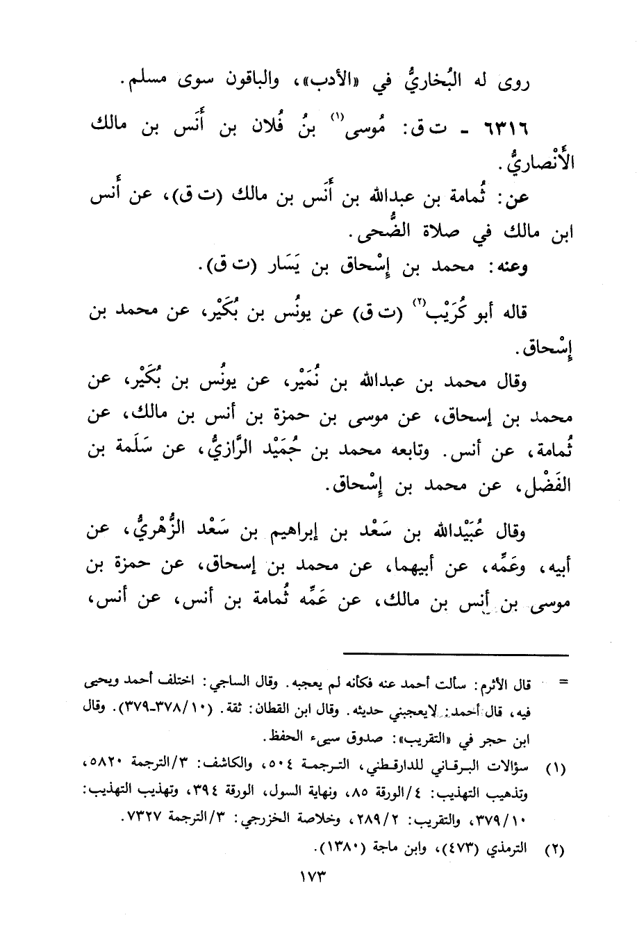 6316 - ت ق: مُوسَى بن فلان بن أنس بن مالك الأَنْصارِيّ (1) .