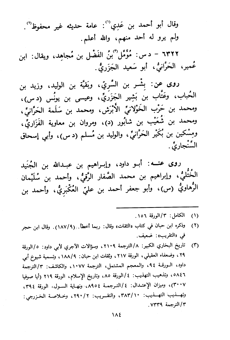6322 - د س: مؤمل بن الفضل بن مجاهد (3) ، ويُقال: ابن عُمَير، الحراني، أَبُو سَعِيد الجزري.