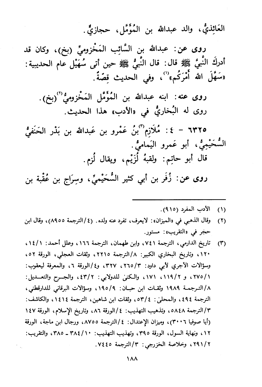 6325 - 4: ملازم بن عَمْرو بْن عَبد الله بْن بدر الحنفي السحيمي (3) ، أَبُو عَمْرو اليمامي.