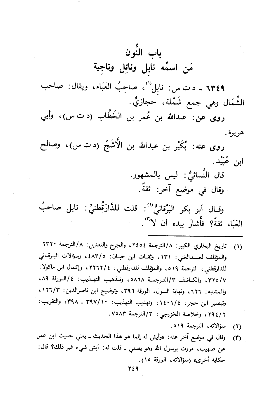 وَقَال أَبُو بكر البرقاني (2) : قلت للدارقطني: نابل صاحب العباء ثقة؟ فاشار بيده ان لا (3) .
