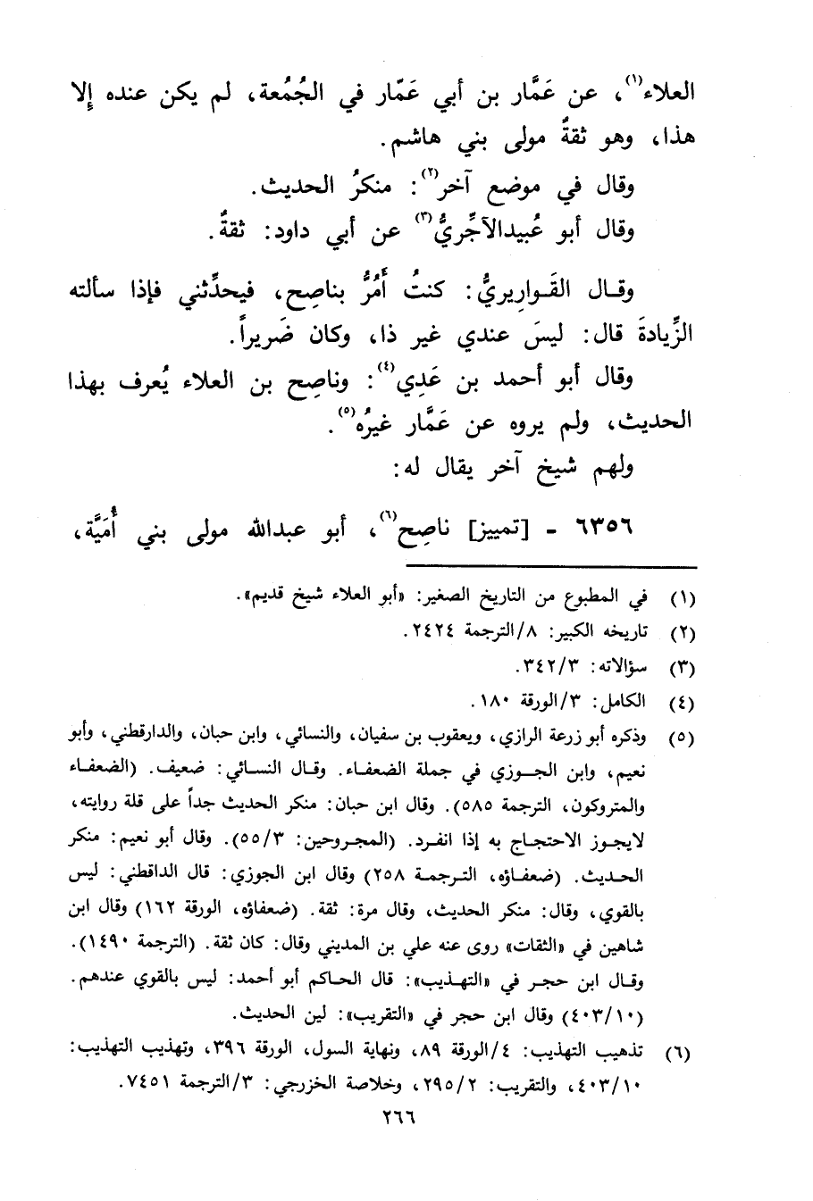 (6) تذهيب التهذيب: 4 / الورقة 89، ونهاية السول، الورقة 396، وتهذيب التهذيب: 10 / 403، والتقريب: 2 / 295، وخلاصة الخزرجي: 3 / الترجمة 7451.