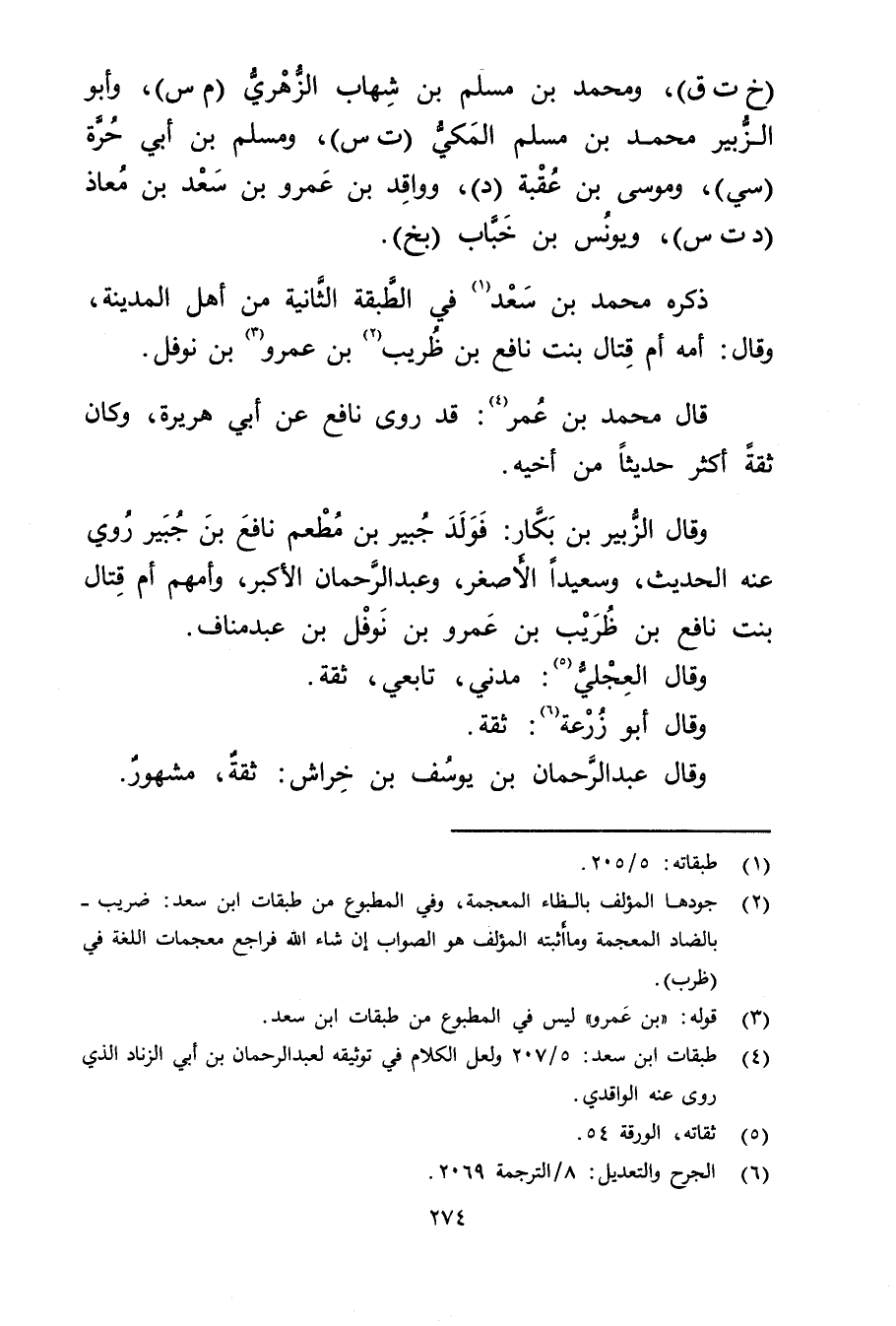 (4) طبقات ابن سعد: 5 / 207 ولعل الكلام في توثيقه لعبد الرحمن بن أَبي الزناد الذي روى عنه الواقدي.