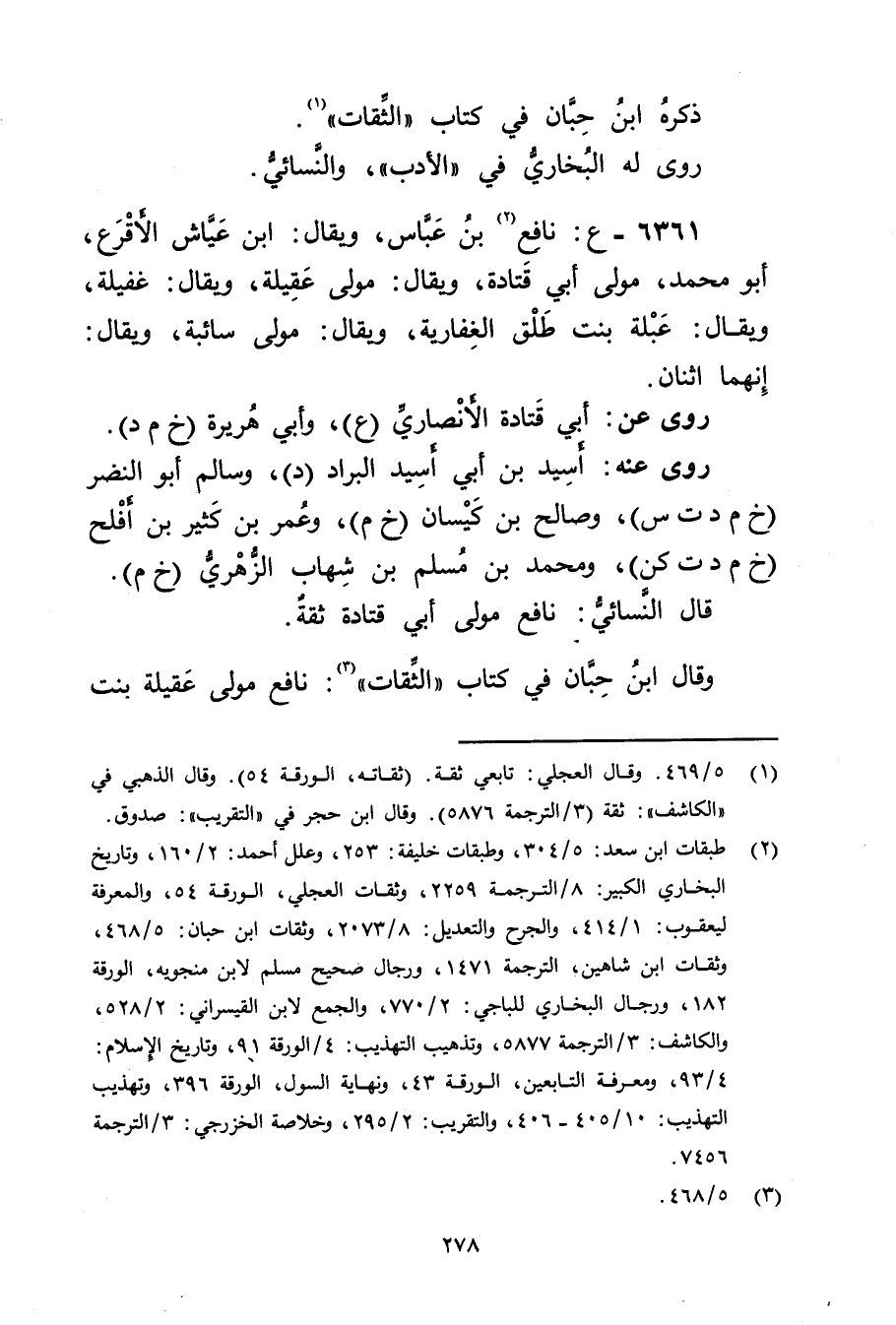 وَقَال ابن حبان فِي كتاب "الثقات" (3) : نافع مولى عقيلة بنت