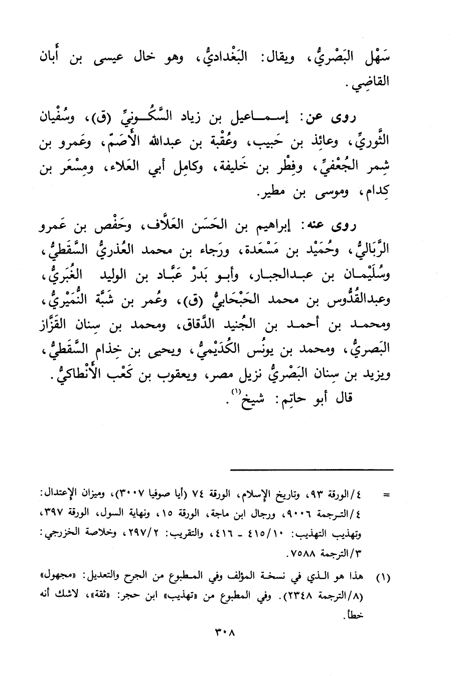 = 4 / الورقة 93، وتاريخ الاسلام، الورقة 74 (أيا صوفيا 3007) ، وميزان الاعتدال: 4 / الترجمة 9006، ورجال ابن ماجة، الورقة 15، ونهاية السول، الورقة 397، وتهذيب التهذيب: 10 / 415 - 416، والتقريب: 2 / 297، وخلاصة الخزرجي: 3 / الترجمة 7588.