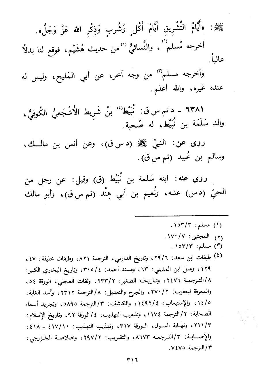 6381 - د تم س ق: نبيط بن شريط الأشجعي الكوفي (4) ، والد سلمة بن نبيط، له صحبة.