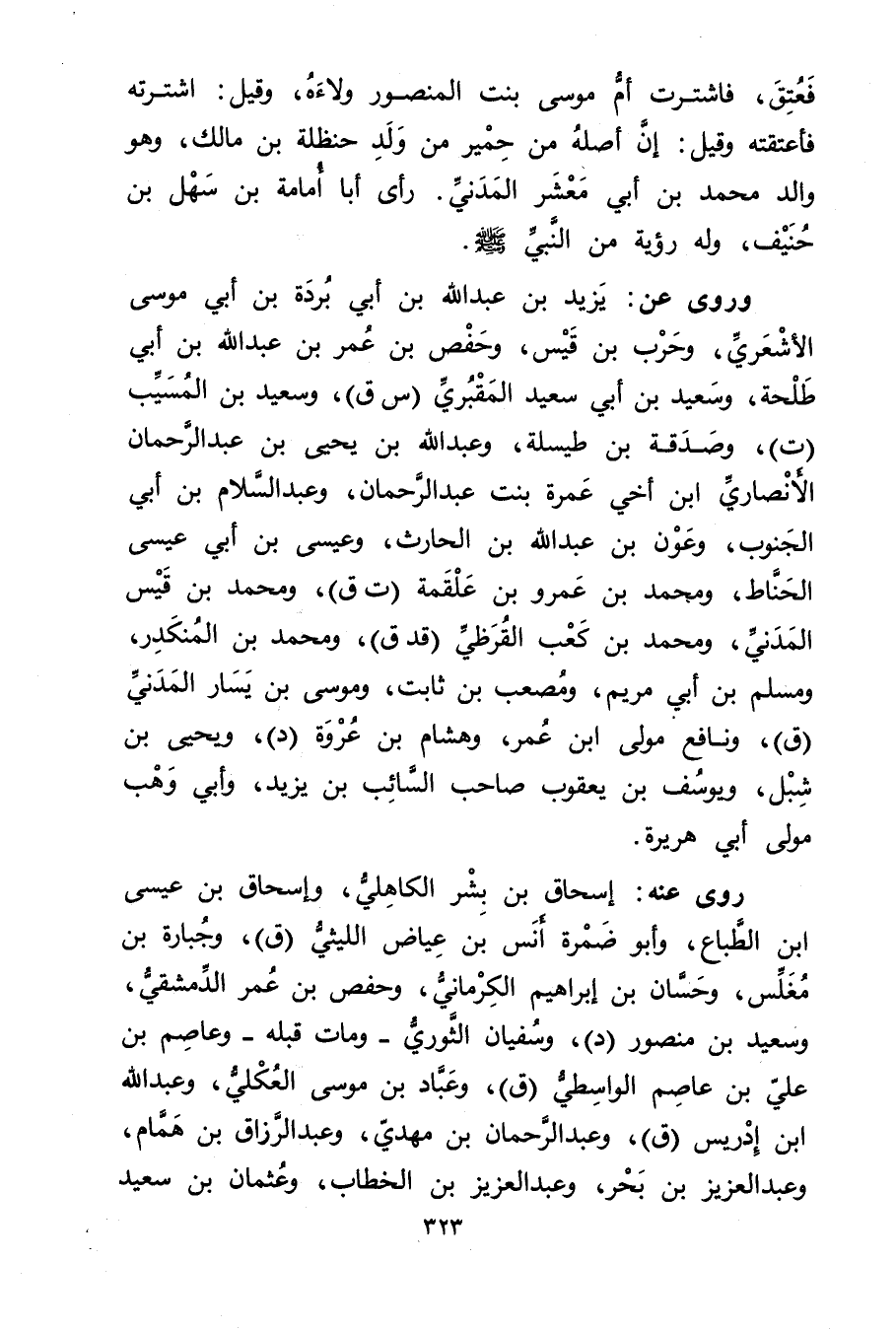 ورَوَى عَن: يزيد بن عَبد اللَّهِ بن أَبي بردة بْن أَبي موسى الأشعري، وحرب بن قيس، وحفص بن عُمَر بْن عَبد الله بْن أَبي طلحة، وسَعِيد بن أَبي سَعِيد المقبري (س ق) ، وسَعِيد بن المُسَيَّب (ت) ، وصدقة بن طيسلة، وعَبد الله بن يَحْيَى بن عَبْدِ الرَّحْمَنِ الأَنْصارِيّ ابن أخي عُمَرة بنت عبد الرحمن، وعبد السلام بْن أَبي الجنوب، وعون بْن عَبد اللَّهِ بْن الحارث، وعيسى بن أَبي عِيسَى الحناط، ومحمد بن عَمْرو بن علقمة (ت ق) ، ومحمد بن قيس المدني، ومحمد بن كعب القرظي (قد ق) ، ومحمد بن الْمُنْكَدِر، ومسلم بْن أَبي مريم، ومصعب بن ثابت، وموسى بن يسار المدني (ق) ، ونافع مولى ابن عُمَر، وهشام بْن عروة (د) ، ويحيى بن شبل، ويوسف بن يَعْقُوبَ صاحب السائب بن يزيد، وأبي وهب مولى أبي هُرَيْرة.