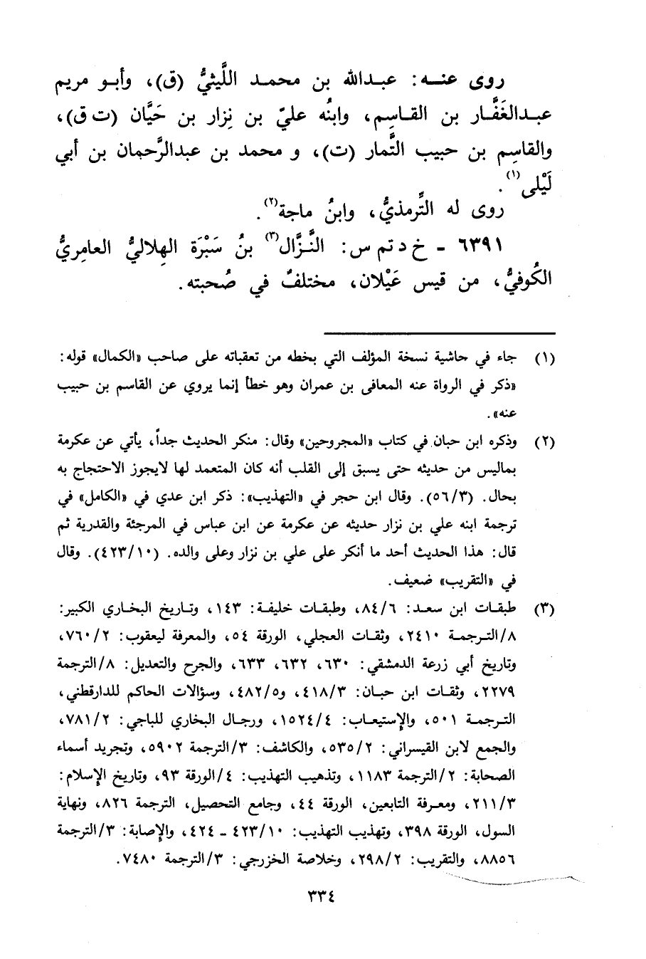 6391 - خ د تم س: النزال بن سبرة الهلالي العامري الكوفي (3) ، من قيس عيلان، مختلف فِي صحبته.