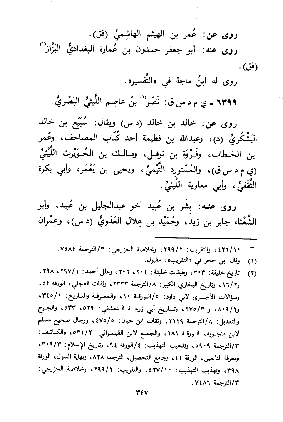 6399 - ي م د س ق: نصر بن عاصم الليثي البَصْرِيّ (2) .
