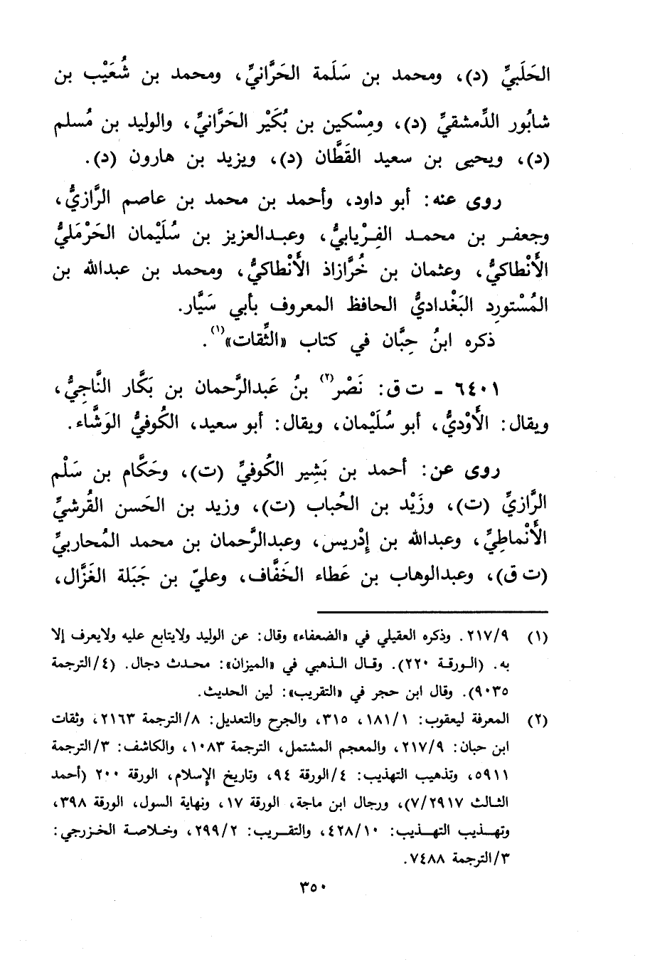 6401 - ت ق: نصر بن عَبْدِ الرَّحْمَنِ بن بكار الناجي (2) ، ويُقال: الأَودِيّ، أَبُو سُلَيْمان، ويُقال: أَبُو سَعِيد، الكوفي الوشاء.
