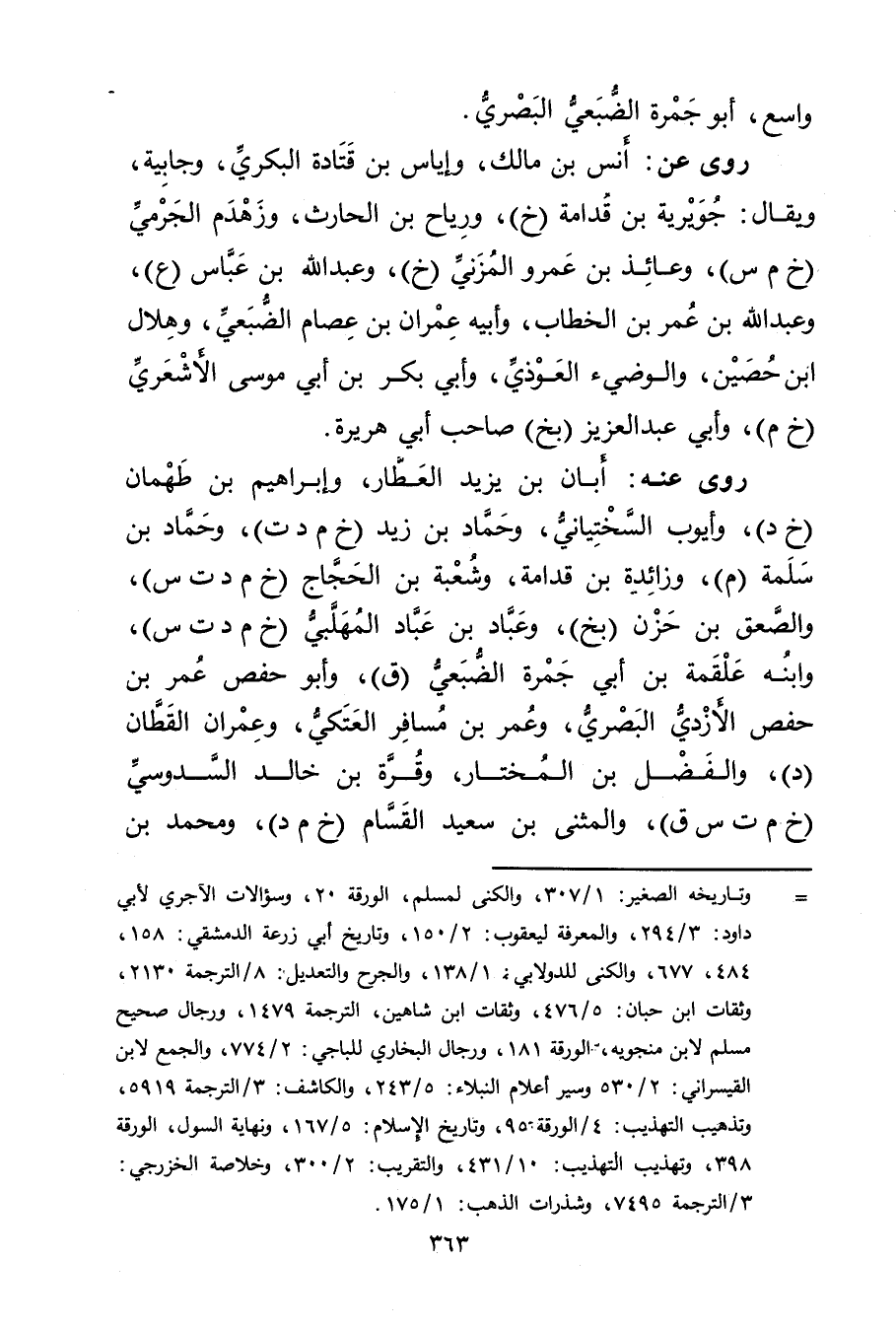 = وتاريخه الصغير: 1 / 307، والكنى لمسلم، الورقة 20، وسؤالات الآجري لابي داود: 3 / 294، والمعرفة ليعقوب: 2 / 150، وتاريخ أبي زرعة الدمشقي: 158، 484، 677، والكنى للدولابي: 1 / 138، والجرح والتعديل: 8 / الترجمة 2130، وثقات ابن حبان: 5 / 476، وثقات ابن شاهين، الترجمة 1479، ورجال صحيح مسلم لابن منجويه، الورقة 181، ورجال البخاري للباجي: 2 / 774، والجمع لابن القيسراني: 2 / 530 وسير اعلام النبلاء: 5 / 243، والكاشف: 3 / الترجمة 5919، وتذهيب التهذيب: 4 / الورقة 95، وتاريخ الاسلام: 5 / 167، ونهاية السول، الورقة 398، وتهذيب التهذيب: 10 / 431، والتقريب: 2 / 300، وخلاصة الخزرجي: 3 / الترجمة 7495، وشذرات الذهب: 1 / 175.