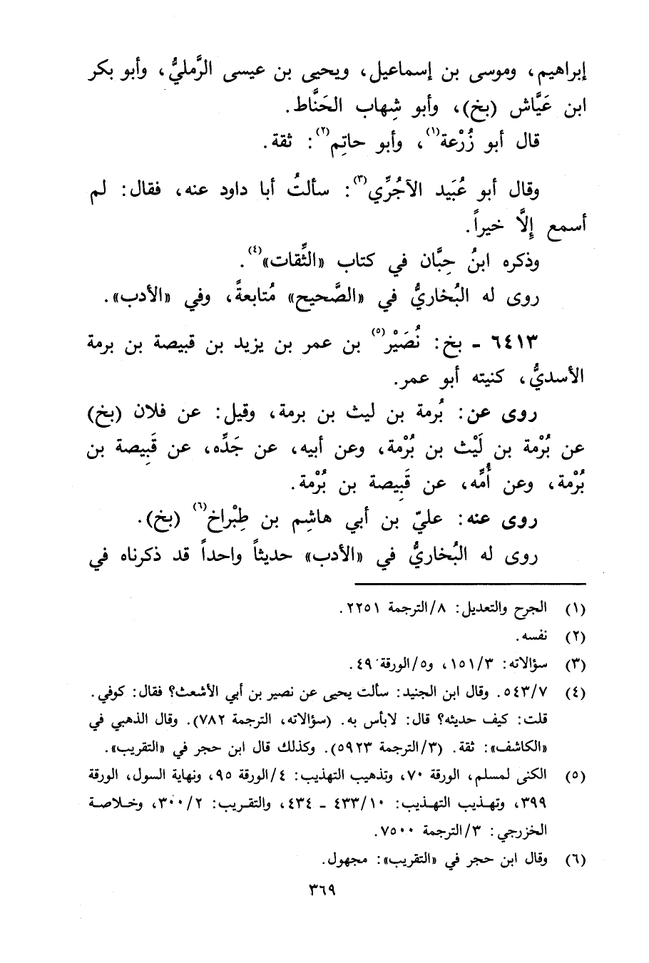(5) الكنى لمسلم، الورقة 70، وتذهيب التهذيب: 4 / الورقة 95، ونهاية السول، الورقة 399، وتهذيب التهذيب: 10 / 433 - 434، والتقريب: 2 / 300، وخلاصة الخزرجي: 3 / الترجمة 7500.