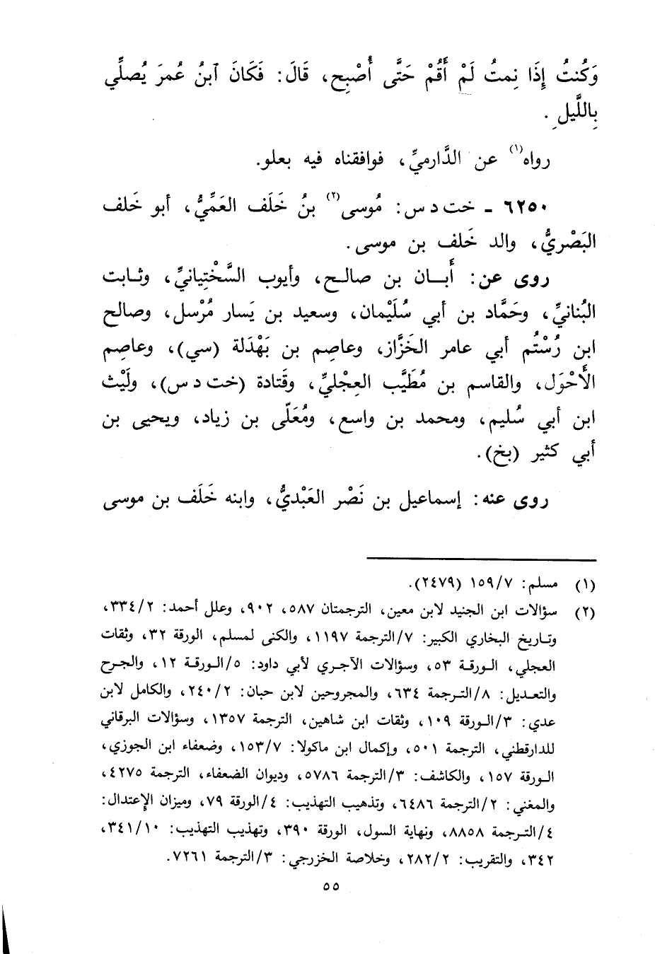 6250 - خت د س: مُوسَى بن خلف العمي (2) ، أَبُو خلف البَصْرِيّ، والد خلف بن مُوسَى.