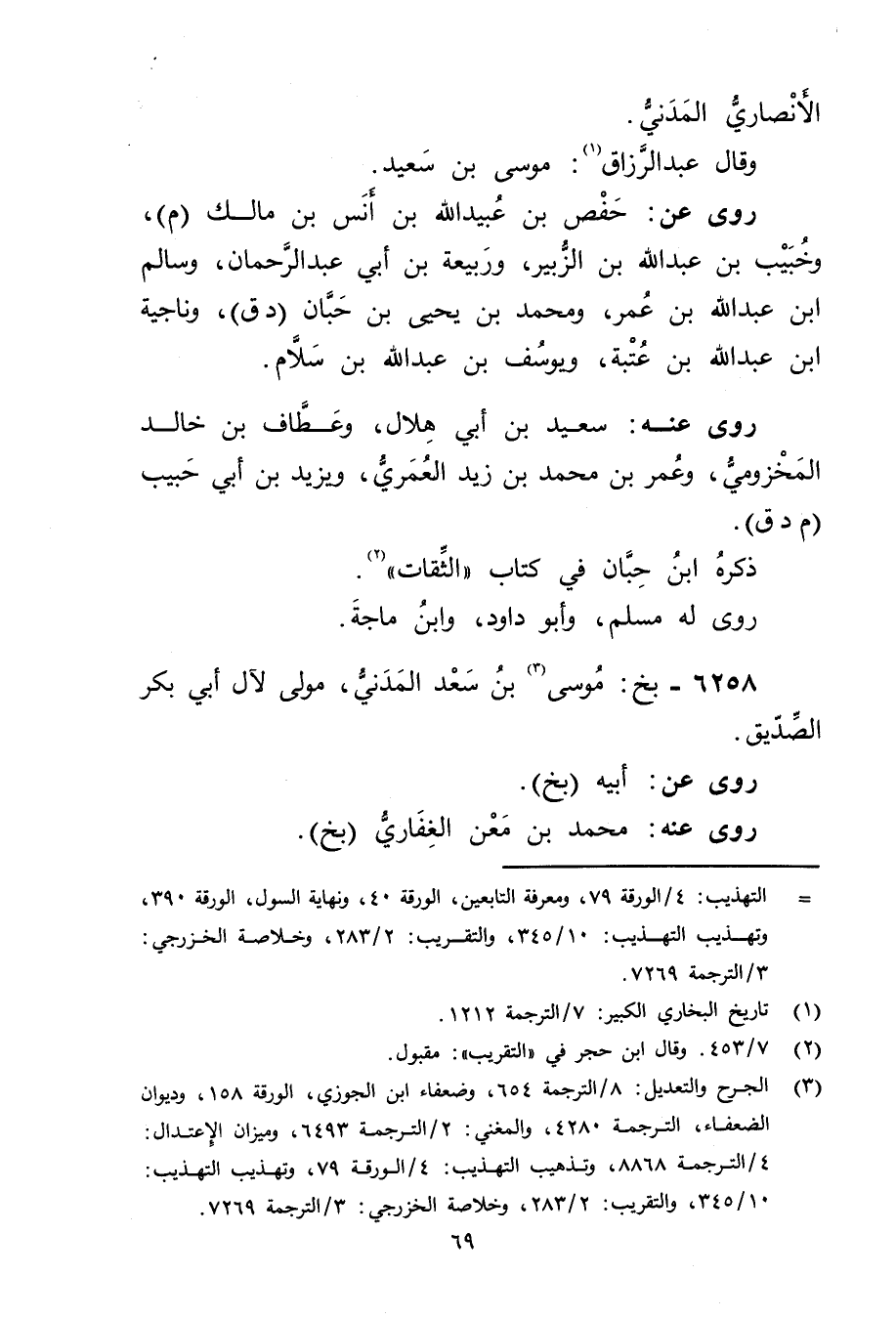 6258 - بخ: مُوسَى بن سعد المدني (3) ، مولى لآل أبي بكر الصديق.