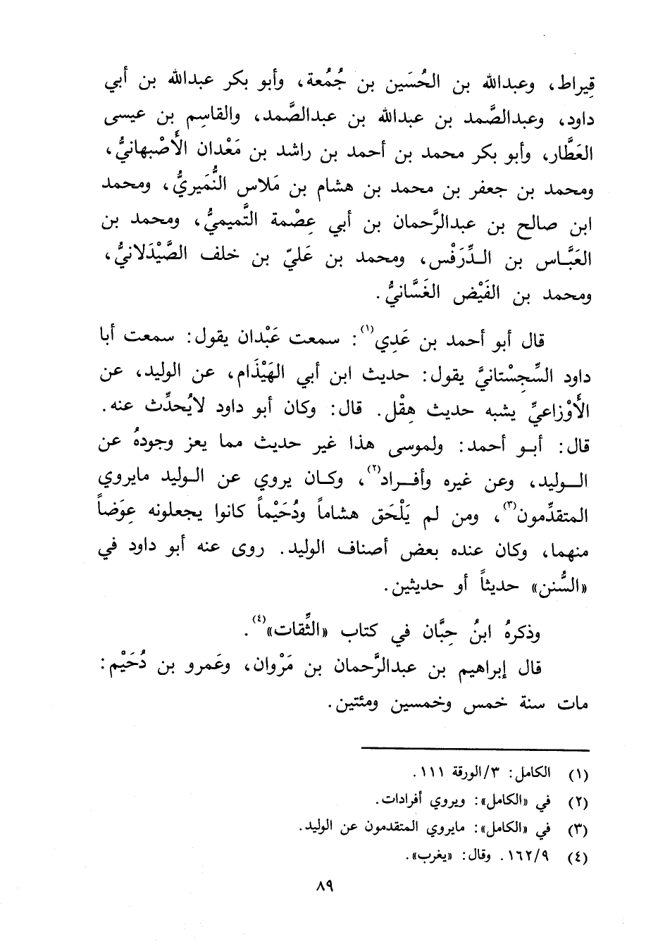 (3) في " الكامل": ما يروي المتقدمون عن الوليد.