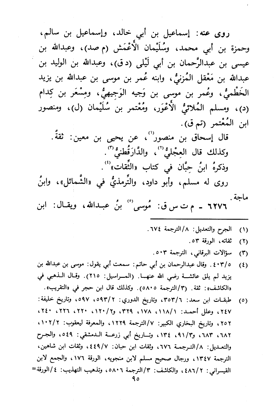 6276 - م ت س ق: مُوسَى بن عَبد اللَّهِ (5) ، ويُقال: ابن