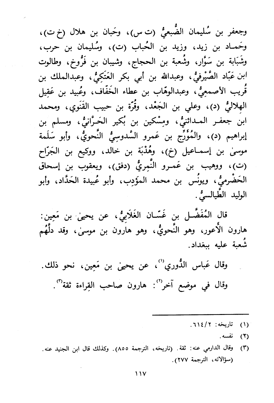 (3) وَقَال الدارمي عَنه: ثقة. (تاريخه، الترجمة 855) . وكذلك قال ابن الجنيد عنه. (سؤالاته، الترجمة 277) .