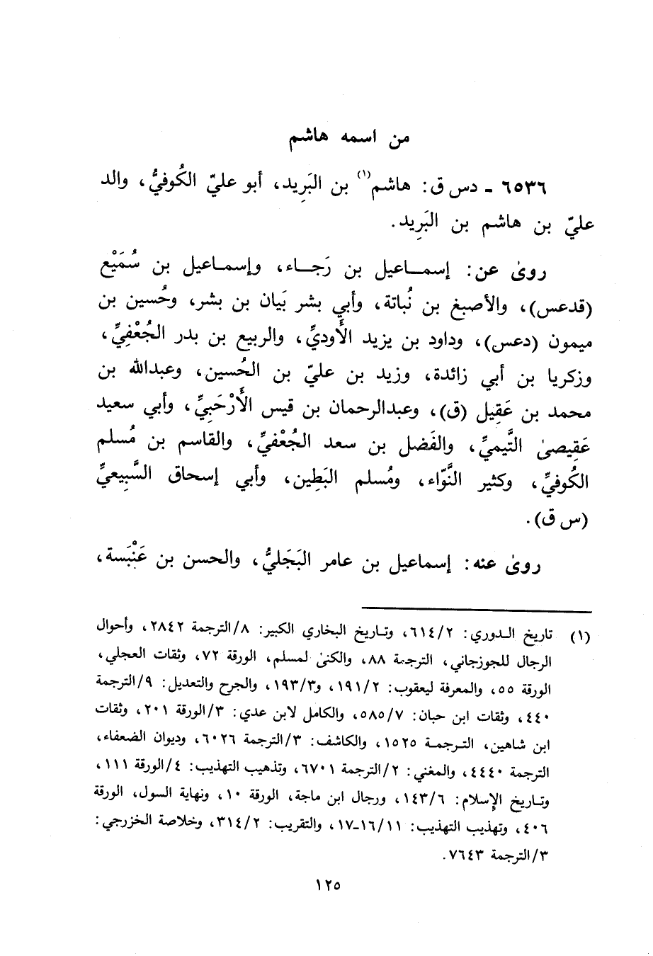 6536 - د س ق: هاشم بن البريد (1) ، أَبُو عَلِي الكوفي، والد عَلِي بْن هاشم بن البريد.