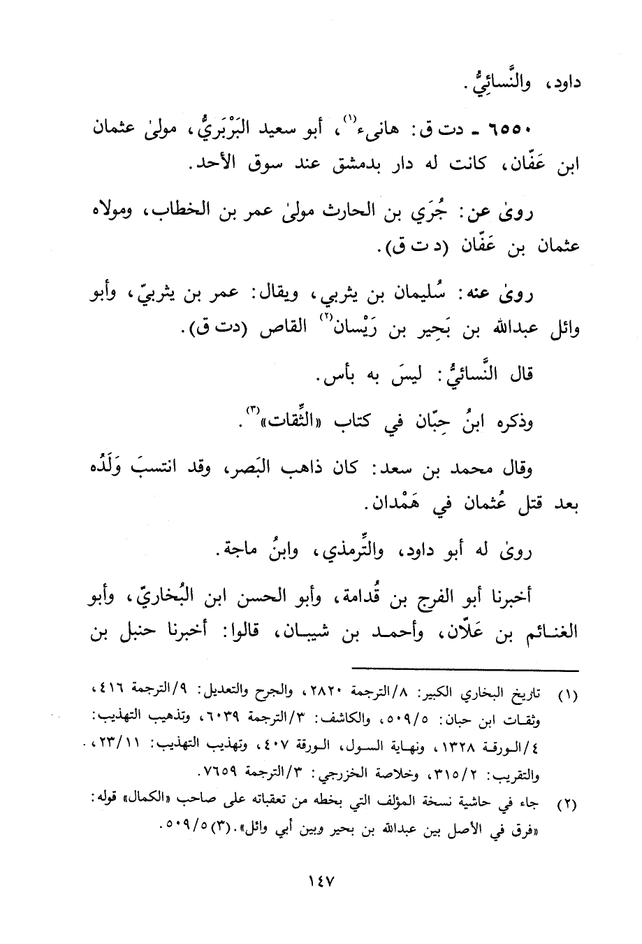 6550 - دت ق: هانئ (1) ، أَبُو سَعِيد البربري، مولى عثمان ابن عفان، كانت له دار بدمشق عند سوق الأحد.
