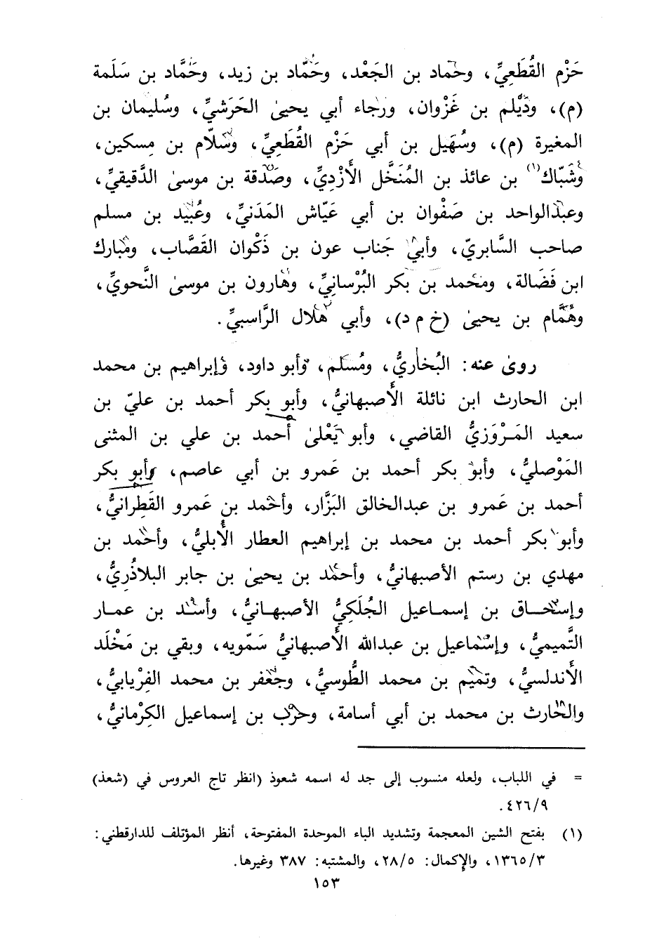 (1) بفتح الشين المعجمة وتشديد الباء الموحدة المفتوحة، أنظر المؤتلف للدار قطني: 3 / 1365، والاكمال: 5 / 28، والمشتبه: 387 وغيرها.