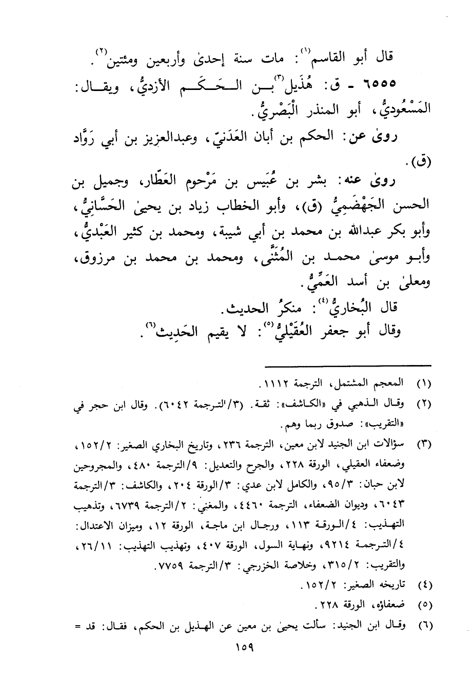 6555 - ق: هذيل بن الحكم الأزدي (3) ، ويُقال: المسعودي، أَبُو المنذر البَصْرِيّ.