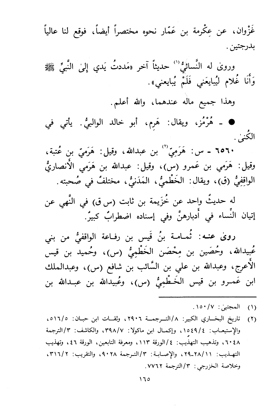 (2) تاريخ البخاري الكبير: 8 / الترجمة 2906، وثقات ابن حبان: 5 / 516، والاستيعاب: 4 / 1549، وإكمال ابن ماكولا: 7 / 398، والكاشف: 3 / الترجمة 6048، وتذهيب التهذيب: 4 / الورقة 113، ومعرفة التابعين، الورقة 46، وتهذيب التهذيب: 11 / 28 - 29، والاصابة: 3 / الترجمة 9028، والتقريب: 2 / 316، وخلاصة الخزرجي: 3 / الترجمة 7762.