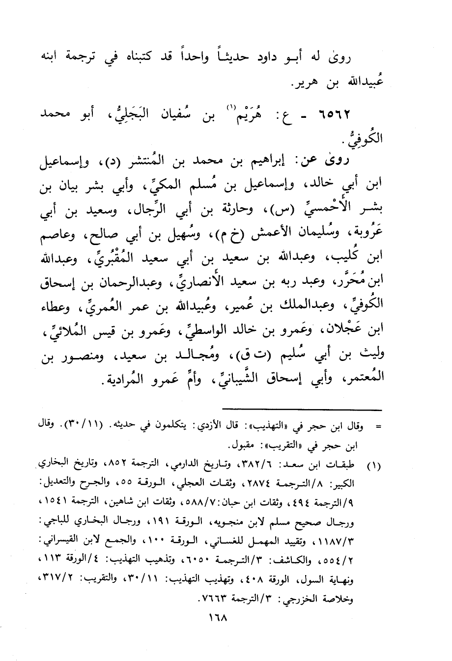 6562 - ع: هريم بن سفيان البجلي (1) ، أَبُو مُحَمَّد الكوفي.