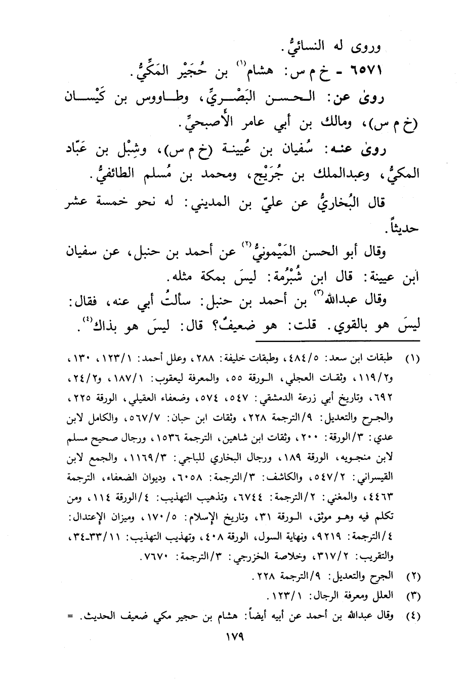 (4) وَقَال عَبد الله بن أحمد عَن أبيه أيضا: هشام بن حجير مكي ضعيف الحديث. =