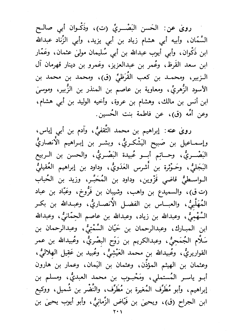 رَوَى عَنه: أبراهيم بن محمد الثقفي، وآدم بْن أَبي إياس، وإِسْمَاعِيل بْن صبيح اليشكري، وبشر بن إبراهيم الأَنْصارِيّ البَصْرِيّ، وحاتم أَبُو عُبَيدة البَصْرِيّ، والحسن بن الربيع البجلي، وحوثرة بن أشرس العدوي، وداود بن إبراهيم العقيلي الواسطي قاضي قزوين، وداود بن المحبر، وزيد بن الحباب (ت ق) ، والسميدع بن واهب، وشيبان بن فروخ، وعباد بْن عباد المهلبي، والعباس بْن الفضل الأَنْصارِيّ، وعبد اللَّه بْن بَكْر السهمي، وعبد الله بن زياد، وعبد الله بن عاصم الحماني، وعبد الله بْن المبارك، وعبد الرحمن بن حيان السمتي، وعبد الرحمن بن سلام الجمحي، وعبد الكريم بن روح البَصْرِيّ، وعُبَيد الله بْن عُمَر القواريري، وعُبَيد اللَّه بْن مُحَمَّد العيشي، وعُبَيد بن عقيل الهلالي، وعثمان بن الهيثم المؤذن، وعثمان بن اليمان، وعمار بن هارون أَبُو ياسر المستملي، ومحبوب بن محمد العبدي، ومسلم بن إبراهيم، وأبو مطرف المغيرة بْن مطرف، والنضر بن شميل، ووكيع ابن الجراح (ق) ، ويحيى بن فياض الزماني، وأَبُو أيوب يحيى بن