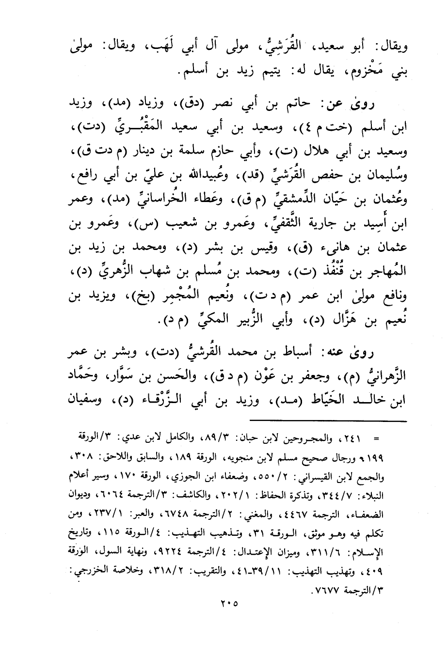 ويُقال: أَبُو سَعِيد، القرشي، مولى آل أبي لهب، ويُقال: مولى بني مخزوم، يقال له: يتيم زيد بْن أسلم.