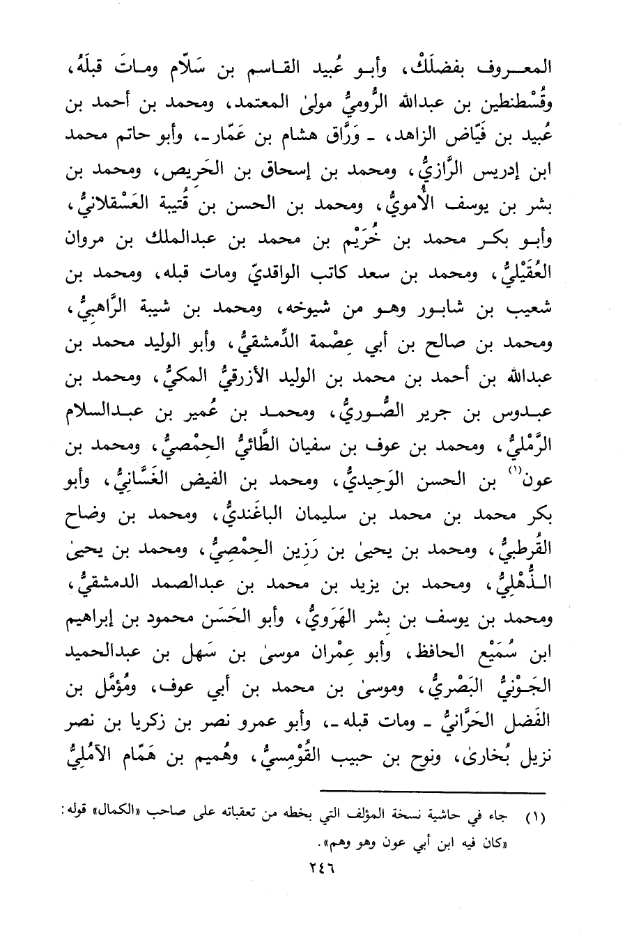 (1) جاء في حاشية نسخة المؤلف التي بخطه من تعقباته على صاحب" الكمال" قوله: كان فيه ابن أَبي عون وهو وهم".