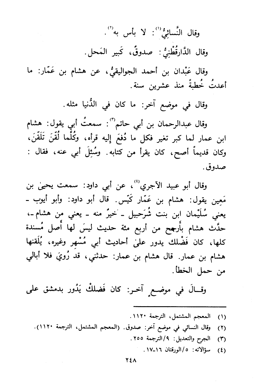 (2) وَقَال النَّسَائي فِي موضع آخر: صدوق. (المعجم المشتمل، الترجمة 1120) .