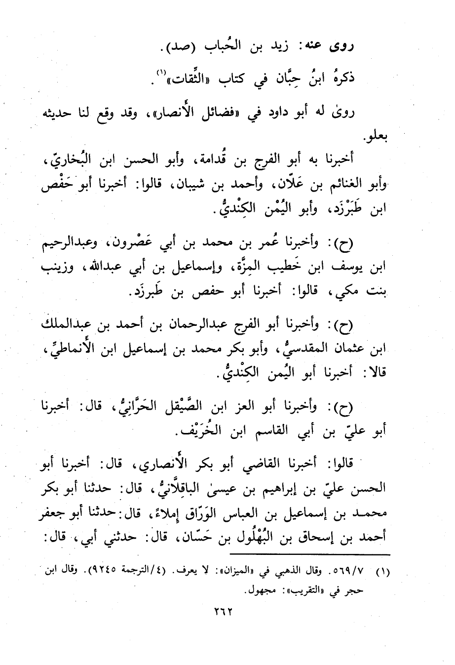 (1) 7 / 569. وَقَال الذهبي في " الميزان": لا يعرف. (4 / الترجمة 9245) . وَقَال ابن حجر في "التقريب": مجهول.