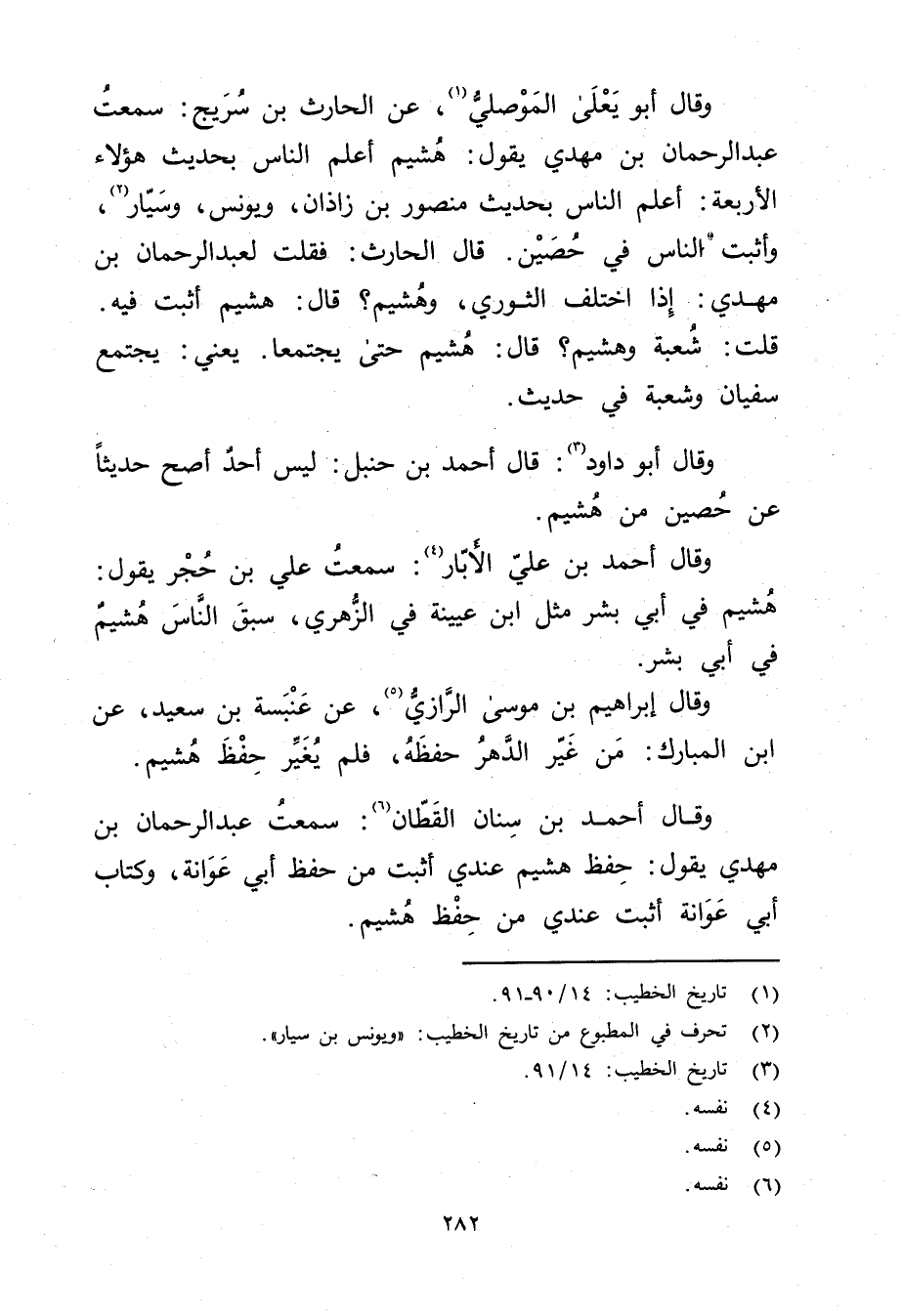 وَقَال أَحْمَد بْن سنان القطان (6) : سَمِعْتُ عَبْد الرحمن بْن مهدي يقول: حفظ هشيم عندي أثبت من حفظ أبي عوانة، وكتاب أبي عوانة أثبت عندي من حفظ هشيم.