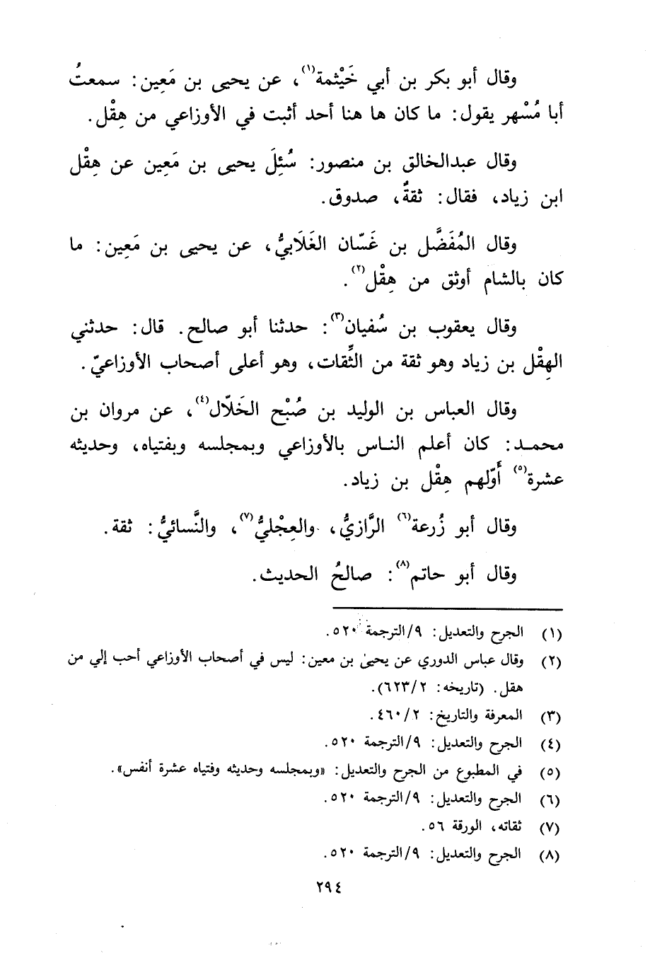 (2) وَقَال عَباس الدُّورِيُّ عَن يحيى بن مَعِين: ليس في أصحاب الأَوزاعِيّ أحب إلي من هقل.